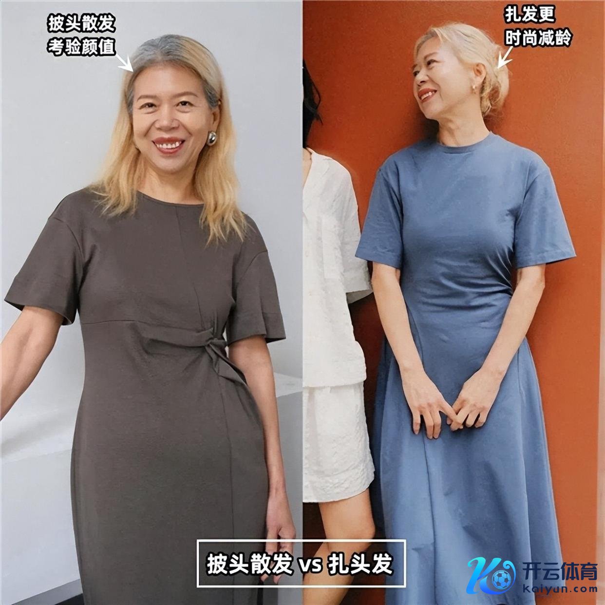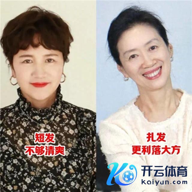 许多东谈主以为短发收拾起来更便捷,但其实短发容易给东谈主一种错落的嗅觉,尤其是早上起床的时辰头发翘得像鸟窝同样,收拾起来反而更难过。 而扎起来的头发不仅看起来整洁干净,还能让颈部线条显得愈加修长优雅,整个这个词东谈主的精气神齐不同样了呢!望望图片里扎着马尾辫的大姨,是不是显得终点精神~ 对比图⑵.短发锻练颜值;扎发更前锋减龄