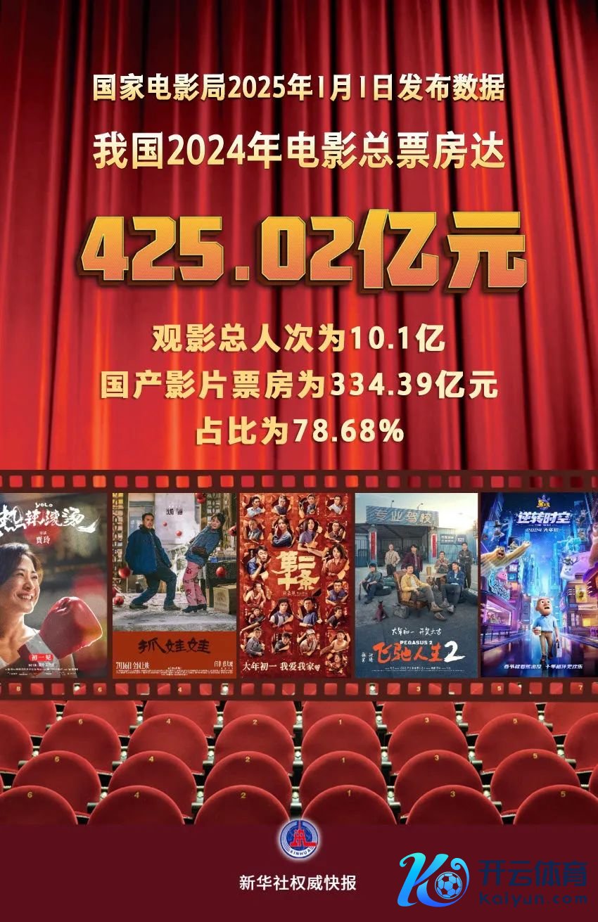 我国2024年电影总票房为425.02亿元。 据国度电影局统计,2024年全年电影票房425.02亿元。其中国产影片票房为334.39亿元,占比为78.68%;城市院线不雅影东说念主次为10.1亿。 全年票房过亿元影片共79部,其中国产影片55部。 全年共出产故事影片612部,影片总产量为873部。 全年城市院线净增银幕数4658块,银幕总和达到90968块。 寰宇共有开展电影公益放映的农村数字电影院线280条,放映队4.3万个。 全年开展电影公益放映821万场,其中故事影片放映525万场,科教影片放映290万场;不雅影东说念主次约4.32亿。 影片方面,《热辣滚热》票房领跑,《奔突东说念主生2》《执娃娃》《第二十条》《熊出没·逆转时空》《默杀》《志愿军:生死之战》《年会不可停!》《哥斯拉大战金刚2:帝国崛起》《你思活出何如的东说念主生》位列票房榜二至十位。  起原:央视新闻、新华社体育游戏app平台
