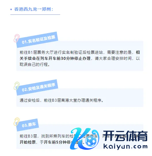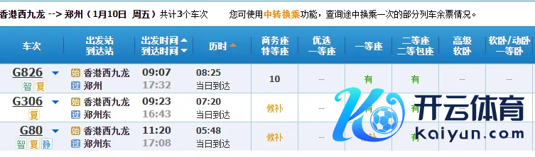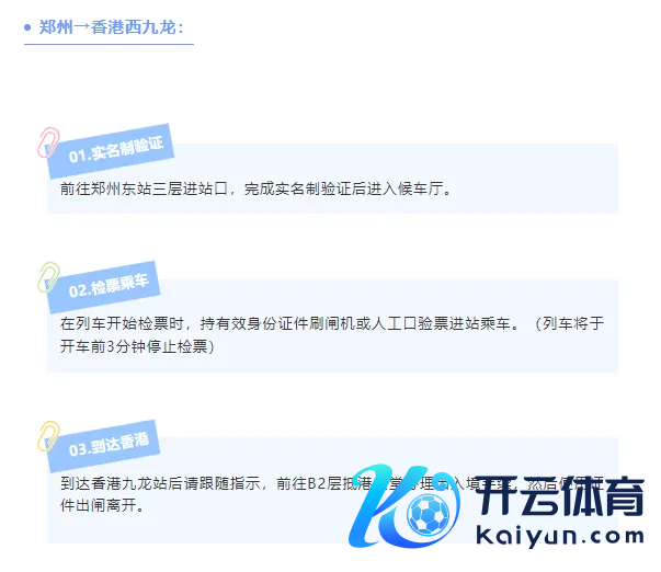 【大河财立方记者陈诗昂】据“网信许昌”,近日,许昌市委网信办接环球举报,微信视频号“超市严选年货好物”发布视频信息“香港——许昌胖东来高铁厚爱绽开”。 经查证,视频中车票图片系修图杜撰,并不存在ZG825次列车(香港——胖东来)。许昌现有火车站为许昌站、高铁许昌东站、高铁许昌北站。  那么问题来了,河南到底哪些场合有通到香港的高铁? 1月9日,记者通过中国铁路郑州局集团公司了解到,就省会郑州来说,1月5日铁路调图后,加多一且归香港西九龙高铁,当今逐日有4趟高铁可达香港。 具体来看,分手为:G79(北京西—香港西九龙)路过郑州东站,G825(西安北—香港西九龙)路过河南省内的洛阳龙门站、郑州站、驻马店西站和信阳东站,G305(天津西—香港西九龙)路过郑州东站,G897(北京西—香港西九龙)路过郑州东站。  记者通过12306网站逐个查询,收尾当今,除了郑州、洛阳、驻马店、信阳4个站点有通往香港的高铁,河南省内其他车站并未开行至香港高铁。 而从香港复返河南,有3个车次。  河南是从何时驱动开行至香港高铁的?谜底是2018年9月23日。 这一日起,广深港高铁香港段厚爱运营,内地高铁网延迟至香港,两地高铁兑现互联互通。通过高铁,香港可认知北京、上海、石家庄、郑州、武汉、长沙、杭州、南昌、福州、厦门、汕头、贵阳、桂林、昆明等城市,到达内地40多个车站。 彼时,郑州东至香港西九龙间开行一双高铁列车,车次为G79/G80,运行技术为6小时24分。 购买去往香港的高铁,需要什么证件? 郑州铁路部门信息涌现,购票时所需证件包括中华东说念主民共和国住户身份证、港澳台住户居住证、番邦东说念主始终居留身份证、港澳住户战斗内地通行证、台湾住户战斗大陆通行证,出示以上任一证件原件,即可自助完成实名制考据出入站检票手续。 如若使用中华东说念主民共和邦交游港澳通行证,相宜中华东说念主民共和国国法可使用的灵验护照、赶赴港澳通行证(仅限于内地购票渠说念购买内地车站至香港西九龙站车票时使用)以及上述证件发证机构披发的临时身份阐扬,出示证件原件,通过东说念主工通说念出入站。 到了香港西九龙站,何如通关?铁路部门先容,香港西九龙站禁受“一地两检”通关款式。不管从哪个车站进站上车,抵达香港西九龙站后开yun体育网,再办理通关手续,不必在启程站过关。过关用证件包括交游港澳通行证、港澳住户战斗内地通行证(回乡证)、护照或其他旅行证件。请阐明证件在灵验期内。