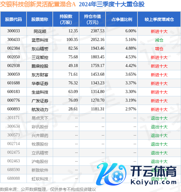 交银科技改换天真设立夹杂A为夹杂型-天真基金,笔据最新一期基金季报显现,该基金钞票设立:股票占净值比91.34%,债券占净值比0.34%,现款占净值比12.07%。基金十大重仓股如下:
