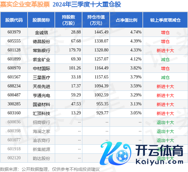 嘉实企业变革股票为股票型基金,阐述最新一期基金季报显现,该基金财富建立:股票占净值比90.08%,债券占净值比4.52%,现款占净值比1.79%。基金十大重仓股如下: