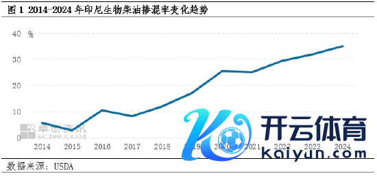 为了镌汰石化燃料入口依赖度,印尼自2008年启动推广生物柴油,搀杂比例为2.5%,即B2.5。2015年设立棕榈油基金机构(BPDPKS),用于处理生物柴油专项补贴基金,况且在2016年之后,印尼国内密集出台一系列强制掺混义务计谋。在补贴激励和计谋鼓吹的双重添砖加瓦下,印尼生物柴油产能过问快速彭胀时刻,到达2023年年头,印尼在世界界限内强制推论B35。2014-2024年,印尼生物柴油掺混率5%快速升迁至35%。