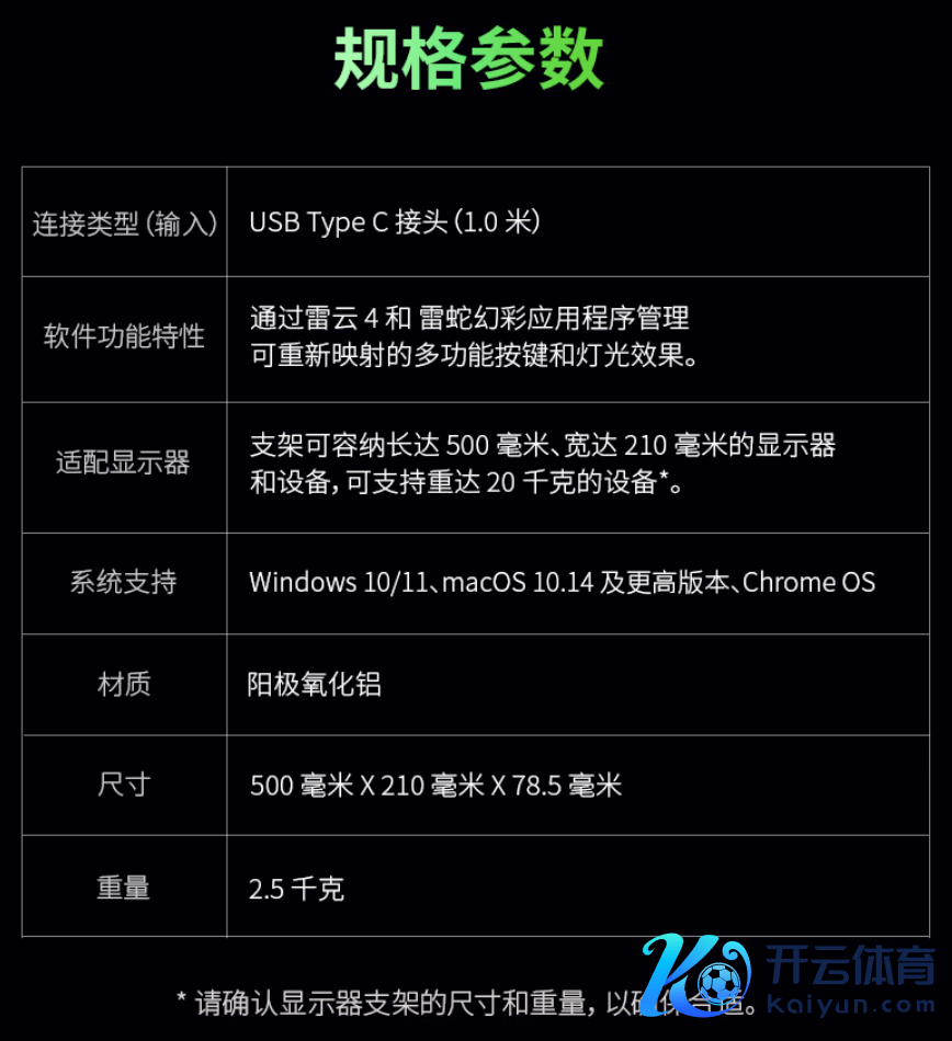 这款增高架全体选拔阳极氧化铝材质,堪称不错撑合手重达20千克的设立,附带有可映射按键,带有RGB灯。