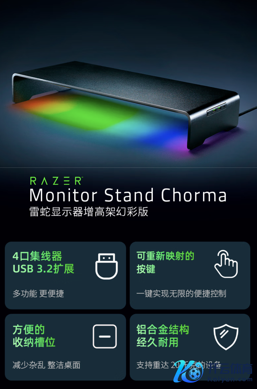 IT之家 1 月 14 日音信,雷蛇现已在上架一款走漏器幻彩增高架,不错看作是一款带有增高架功能的RGB拓展坞,订价为1599元,将于1月28日 0点开售。