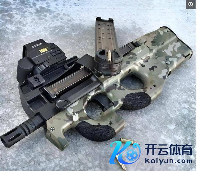 这款看起来超有将来感的兵器,其实即是比利时赫尔斯塔尔公司打造的“P90 单兵防护兵器”。