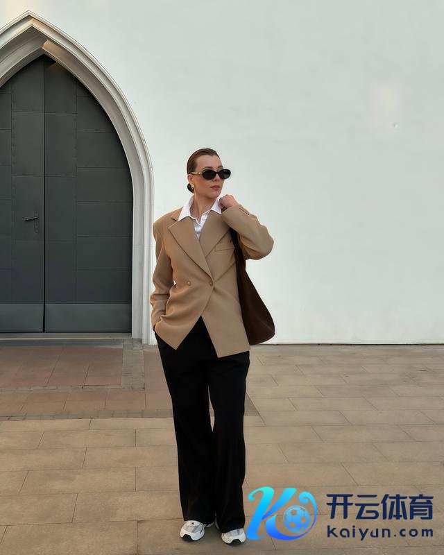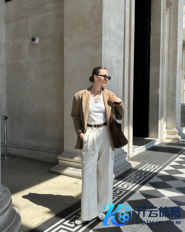 “短外衣+阔腿裤”这个组合不复杂,外衣短到腰线隔壁,裤子宽到能藏住腿型,配色浅深拉开,鞋子选轻巧款,穿上身便是一个利落显高的好景况。 这个春天云开体育,拿出你的短西装、皮衣或者小夹克,配一条阔腿裤穿穿看,通勤出街皆能搭,大略率你会对这个组合上瘾!
