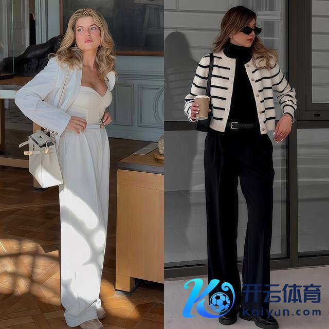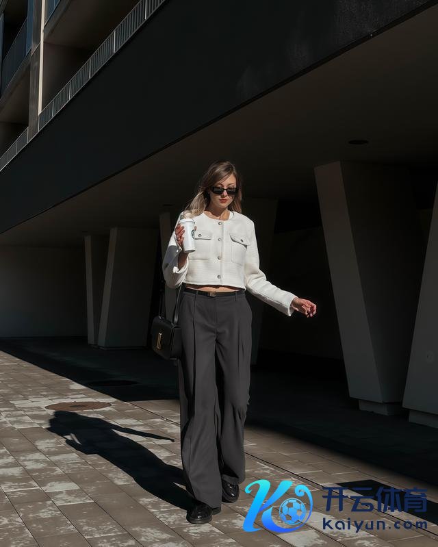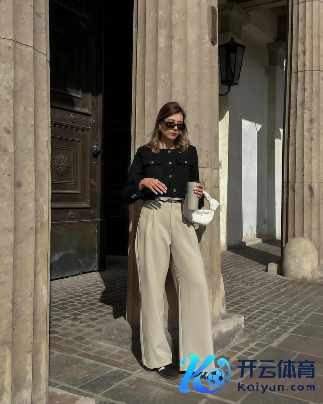 ▶ 玄色小香风+奶白阔腿裤,经典配色阻隔易出错 玄色小香风搭奶白阔腿裤,这个配色竟然太排场、太有气质感了。 短长两色非论放在什么局面皆不会出格,小香风外衣的长度本人就短,刚好卡在腰线,再配一条高腰的奶白阔腿裤,腰线明确、下半身延展面积大,东说念主看起来挺拔修长。