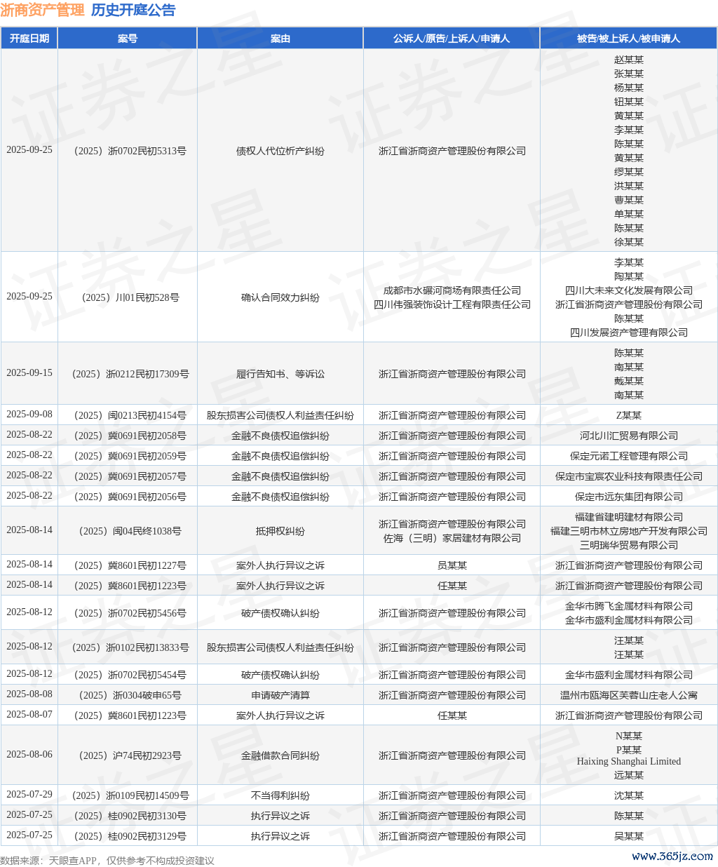 本站音问,凭证天眼查APP透露开云体育(中国)官方网站,近日公布了一则浙江省浙商钞票惩办股份有限公司当作原告/上诉东说念主的开庭公告,驻防本色如下: 案号:(2025)浙0102民初13833号审理法院:杭州市上城区东说念主民法院案由:激动损伤公司债权东说念主利益包袱纠纷当事东说念主信息: 原告/上诉东说念主:浙江省浙商钞票惩办股份有限公司 被告/被上诉东说念主:汪某某、汪某某开庭日历:2025年8月12日凭证统计,近一年内以浙江省浙商钞票惩办股份有限公司为当事东说念主的历史开庭公告有226则,其中案由为“案外东说念主实行异议之诉”的公告以38则居首,其次为“债权东说念主代位权纠纷”有20则,“实行异议之诉”有20则。历史开庭公告(前20条)如下: